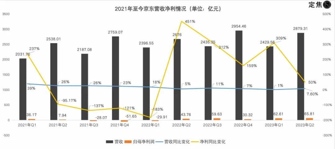 京东在2023年Q2的表现可以概括为,收入和利润保稳,但整体增速“踩刹车”。