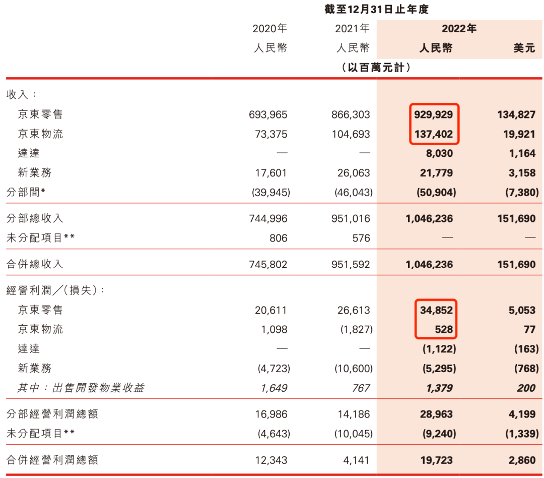京东零售本季的收入规模近万亿、利润规模近350亿
