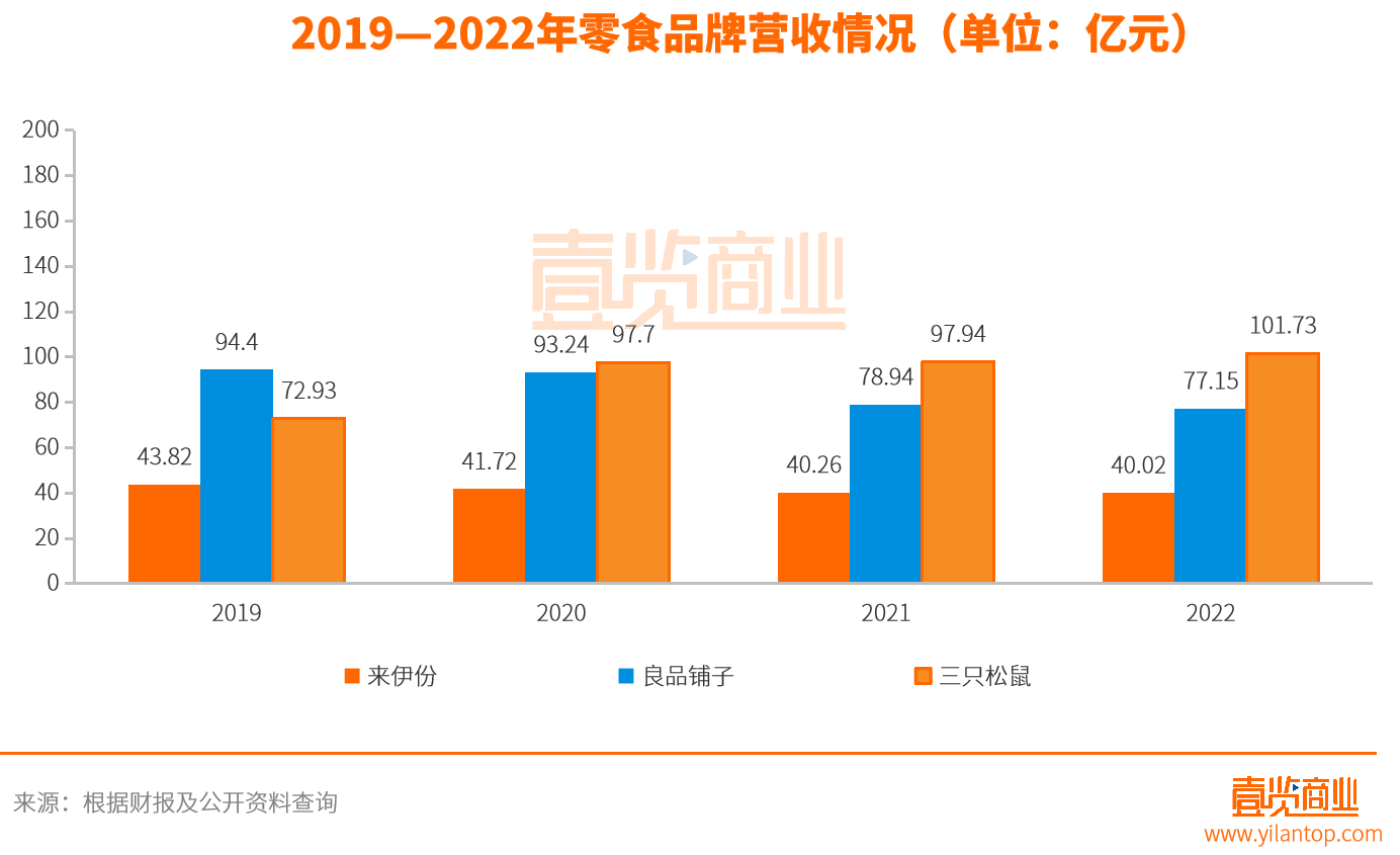 来伊份从2019年起陆续开展了综艺节目赞助、IP联名营销,鲜制零食品牌战略等各类活动。然而,这些努力总体上收益并不大,来伊份近四年的营收规模都没有发生大的变动。