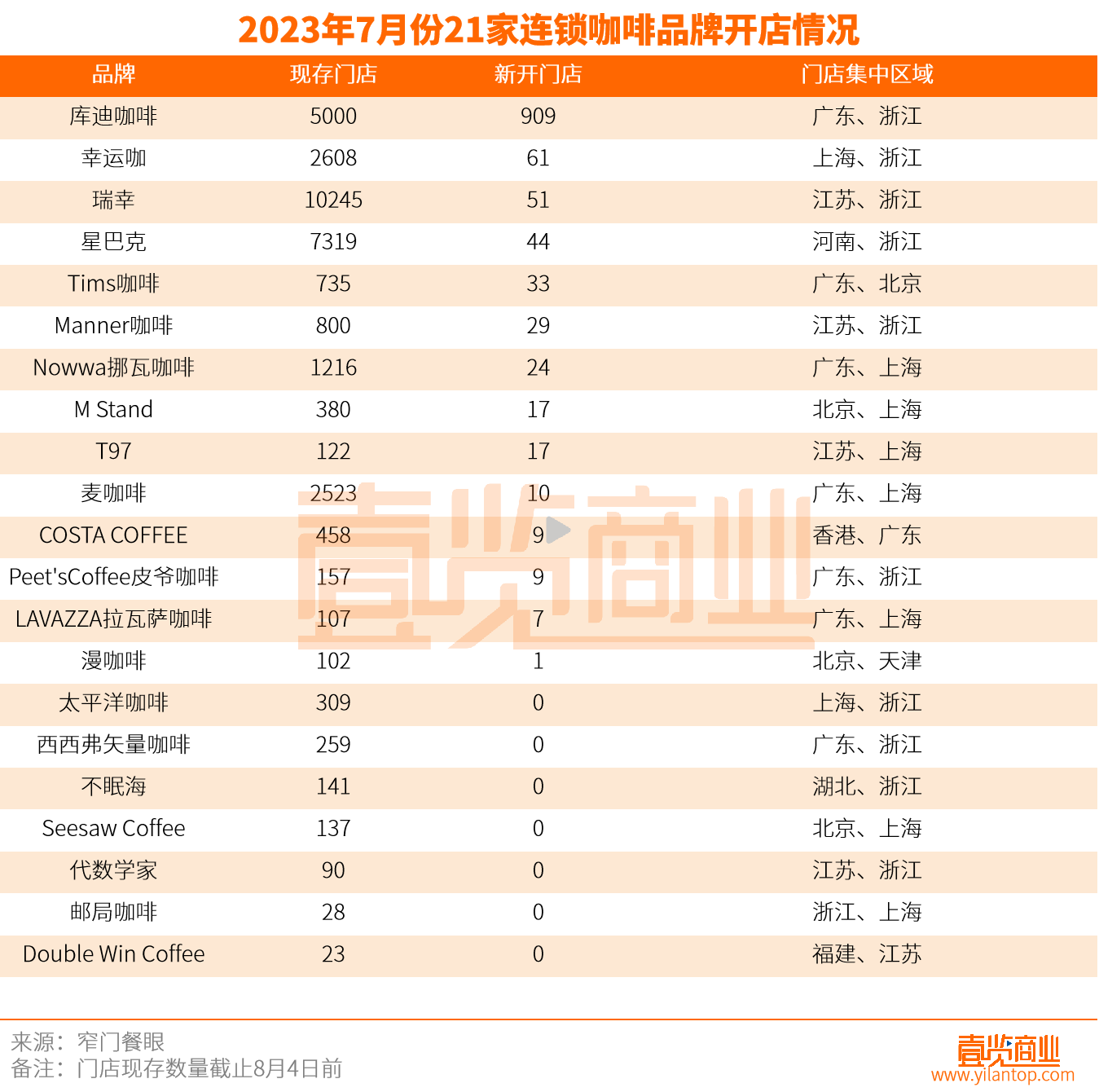 在头部已现的连锁咖啡市场,头部以下的品牌竞争十分激烈。据壹览商业不完全统计7月以来21家连锁咖啡品牌门店数量已达32729家,其中6个品牌门店数量都在千级以上。