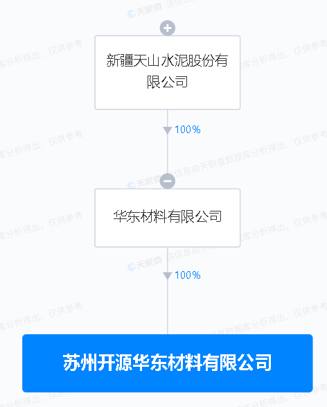 天眼查APP显示,近日,苏州开源华东材料有限公司成立,法定代表人为熊巧林,注册资本2500万元,经营范围包含:水泥制品制造;水泥制品销售;建筑材料销售;金属材料销售等。天眼查股权穿透显示,该公司由天山股份间接全资控股。