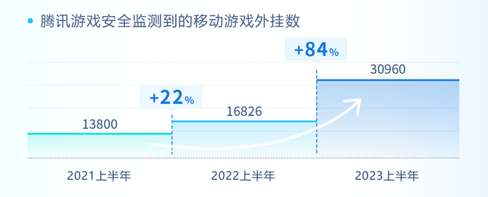外挂一直是游戏的毒瘤,是玩家和厂商最为关注的安全问题,报告显示,2023上半年,PC和移动游戏的外挂数均呈现明显上涨趋势。