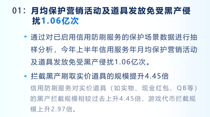 月均保护游戏营销活动及道具发放免受黑产侵扰超1亿次