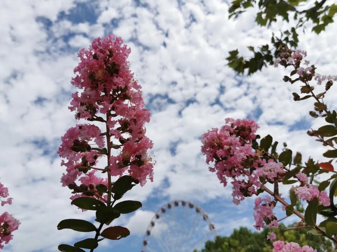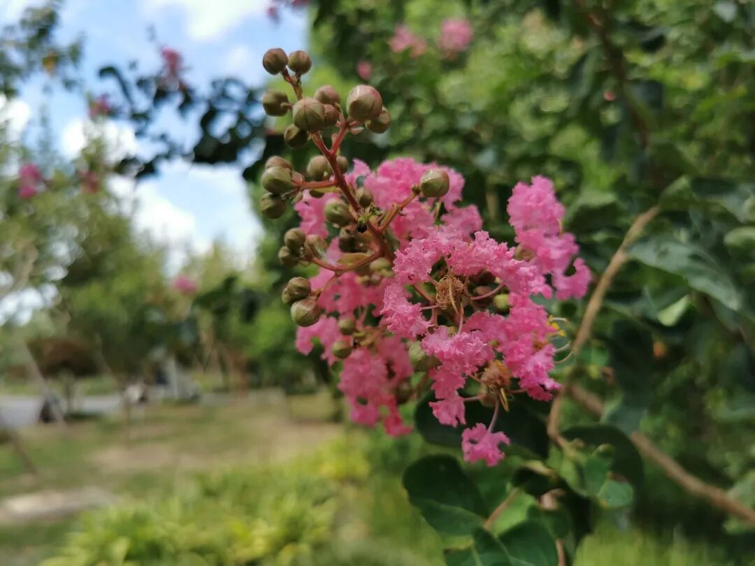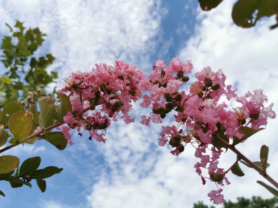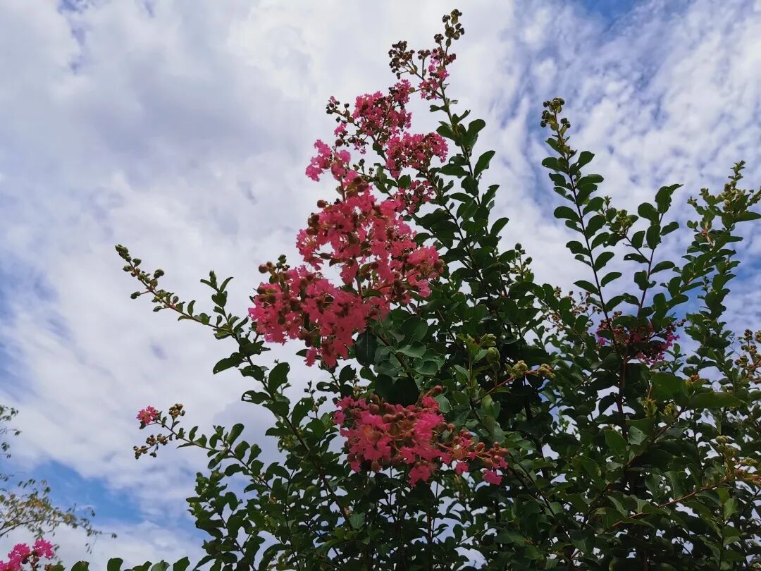 夏末秋初,正是“秋老虎”发威的时候,野外的花卉在这个阶段可谓少之又少。不过紫薇另当别论,每年夏季,紫薇总是顶着炎炎烈日绽放出生命的张力,并为人们留下一簇簇婀娜多姿的鲜花。