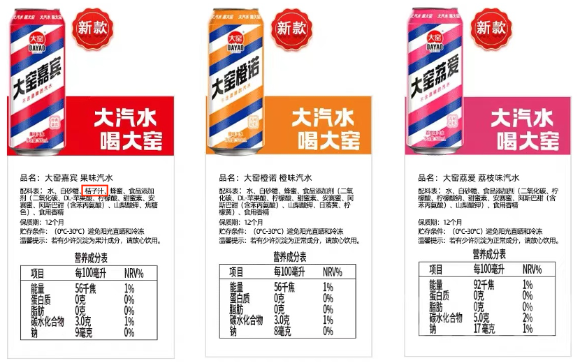 两者相同规格单价相近,且新款大窑嘉宾果味汽水配方较之前添加了果汁。