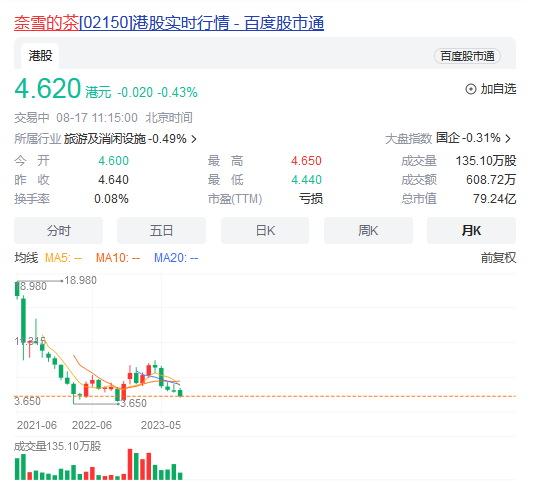 作为对比,已经港股上市的奈雪,上市前估值一度高达130亿,最高市值曾为320亿港元,目前最新市值79.24亿港元。
