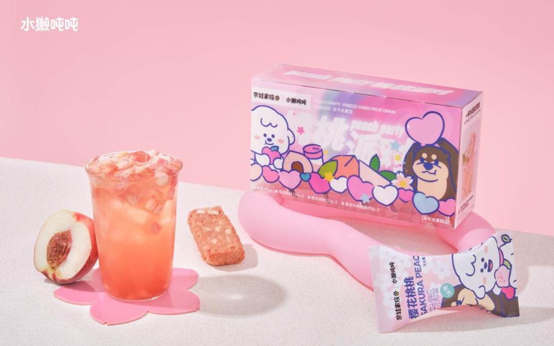 水獭吨吨×奈娃家族推出联名款冻干果茶「桃桃派对」