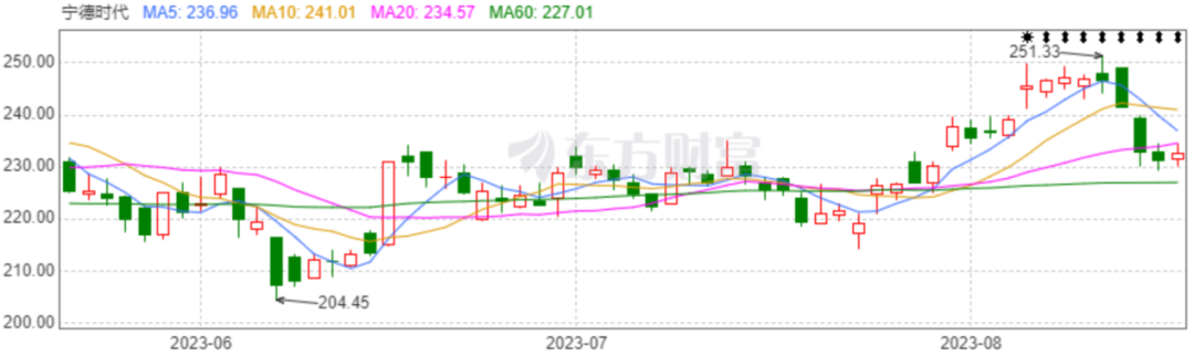 这则消息对行业影响巨大,加上宁德时代刚刚发布了今年的中报,推动宁德时代股价开始反弹,截至8月16日收盘,宁德时代股价为232.6元,回升0.56%。