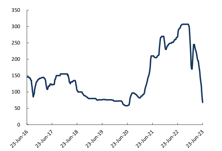 但经过价格高点后,伴随着产能的增加,硅料也同碳酸锂一样“跌下神坛”,据硅业分会6月数据显示,国内N型料成交均价为7.39万元/吨,周环比降幅为8.2%;单晶致密料成交均价为6.64万元/吨,周环比降幅为8.29%,已经击破企业平均生产成本,减产还是停产,已经成为了硅料企业降低经营压力的选择题。