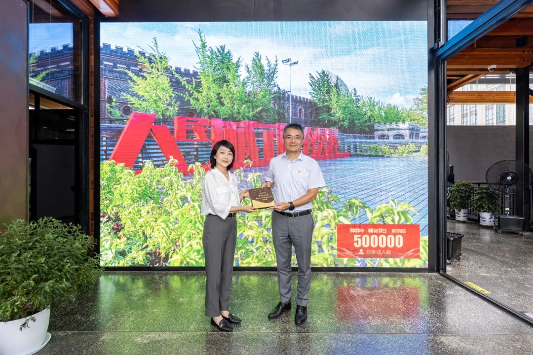 8月17日,杨浦滨江人民城市建设规划展示馆迎来了第50万名参访者,来自交通银行上海杨浦支行。杨浦区委宣传部副部长陈蓉为参访团队代表副行长窦丰雷颁发特制纪念牌并进行亲切交流。