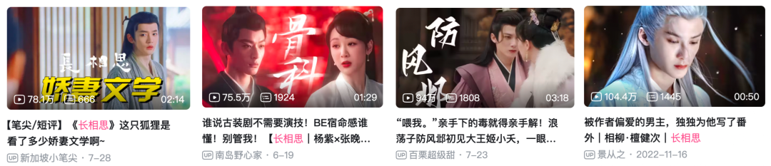 其中最直接的就是对剧集的宣发作用。优质的二创内容可以在剧宣前期提升用户兴趣,吸引用户观看。在中期与后端则通过各种剧情向二创、CP向二创、解说混剪提升用户留存,以及延长剧集的长尾效应。