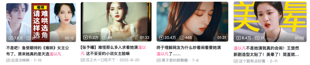 从去年开始,B站上就涌现了大批以王楚然、张予曦为《难哄》女主角温以凡的二创视频,此后《难哄》剧方也的确接触过二人。毒眸此前了解,甚至有些明星团队会提前接洽创作者,进行对应IP剪辑,以提升选角的成功概率。