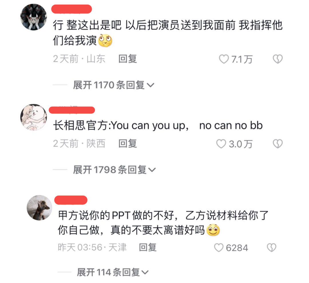与此同时,有些分界线的模糊,也会让人不知所措,比如这次,《长相思》片方将源文件全部放出,让用户自行剪辑。这种行为或许有可以理解的出发点,但也很难熄灭用户端产生“偏离轨道”、甚至“摆烂”的质疑。