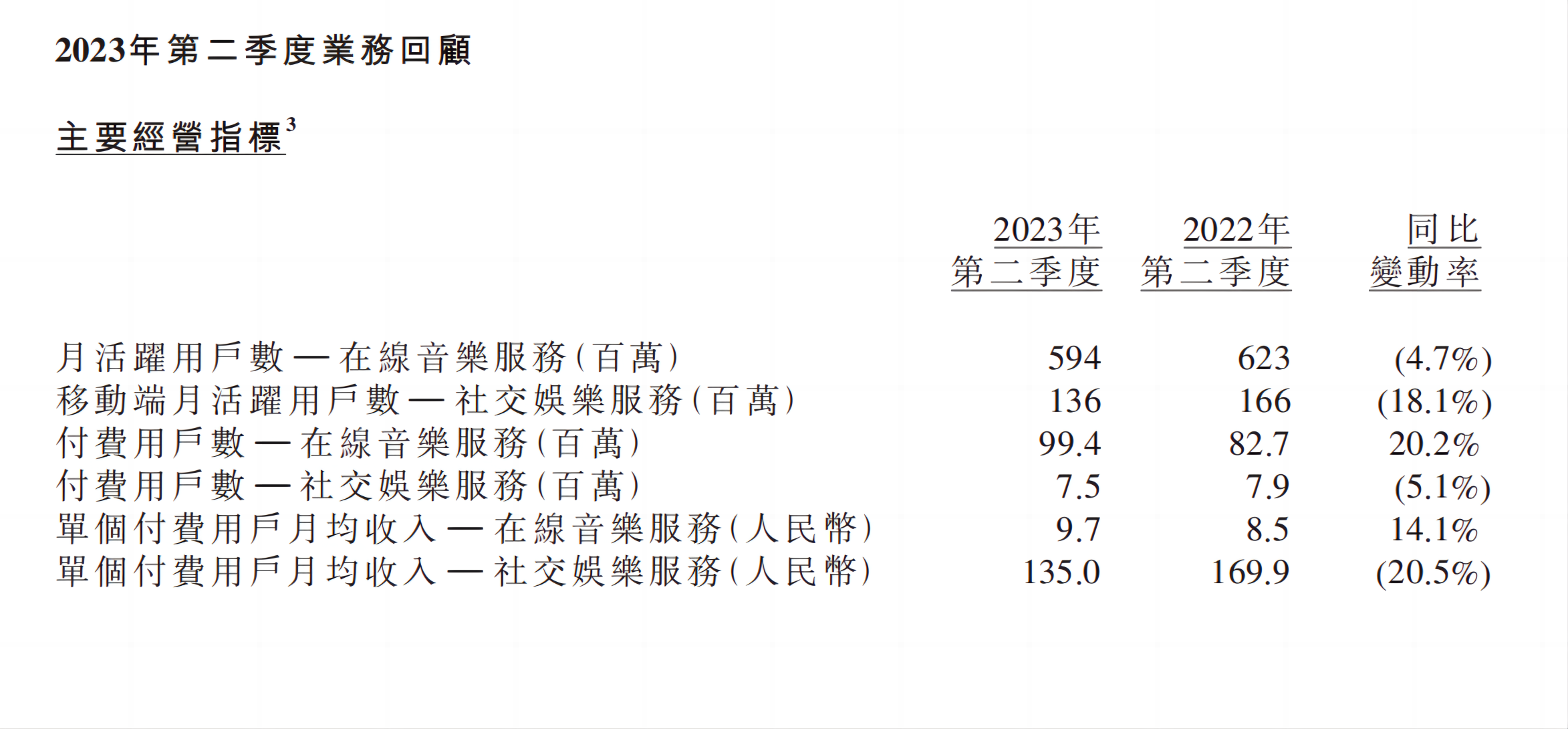 腾讯音乐也对社交娱乐服务的压力做了提示,算是给了一些稳定的预期:“2023年下半年该业务也会持续面临压力。