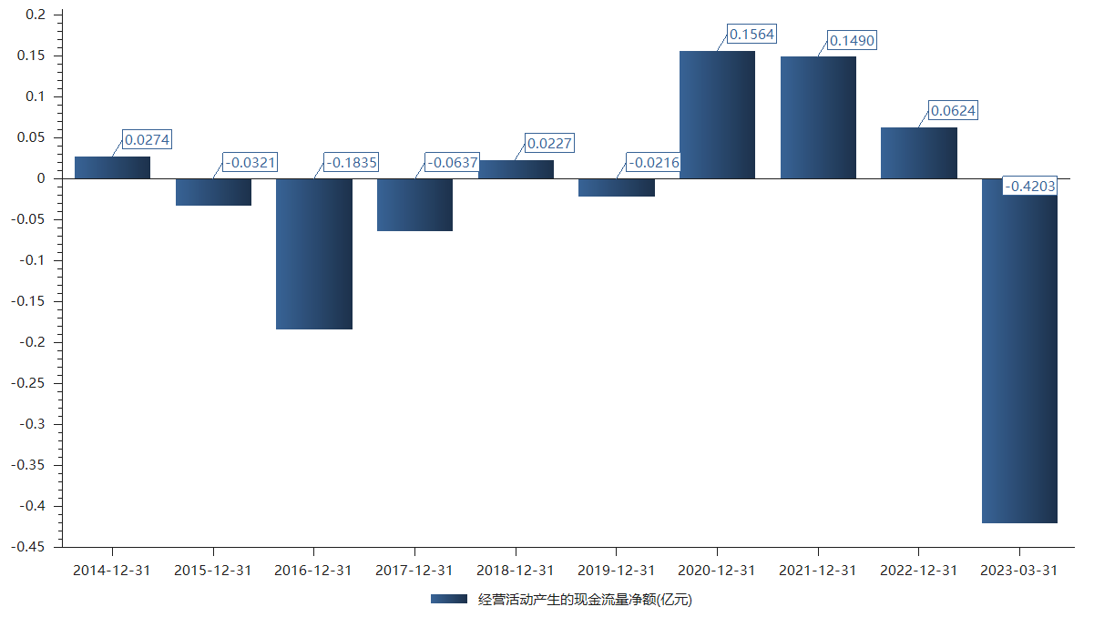 与此同时,公司经营性净现金流也较低。2020年至2022年经营性净现金流从0.16亿元降至0.06亿元。
