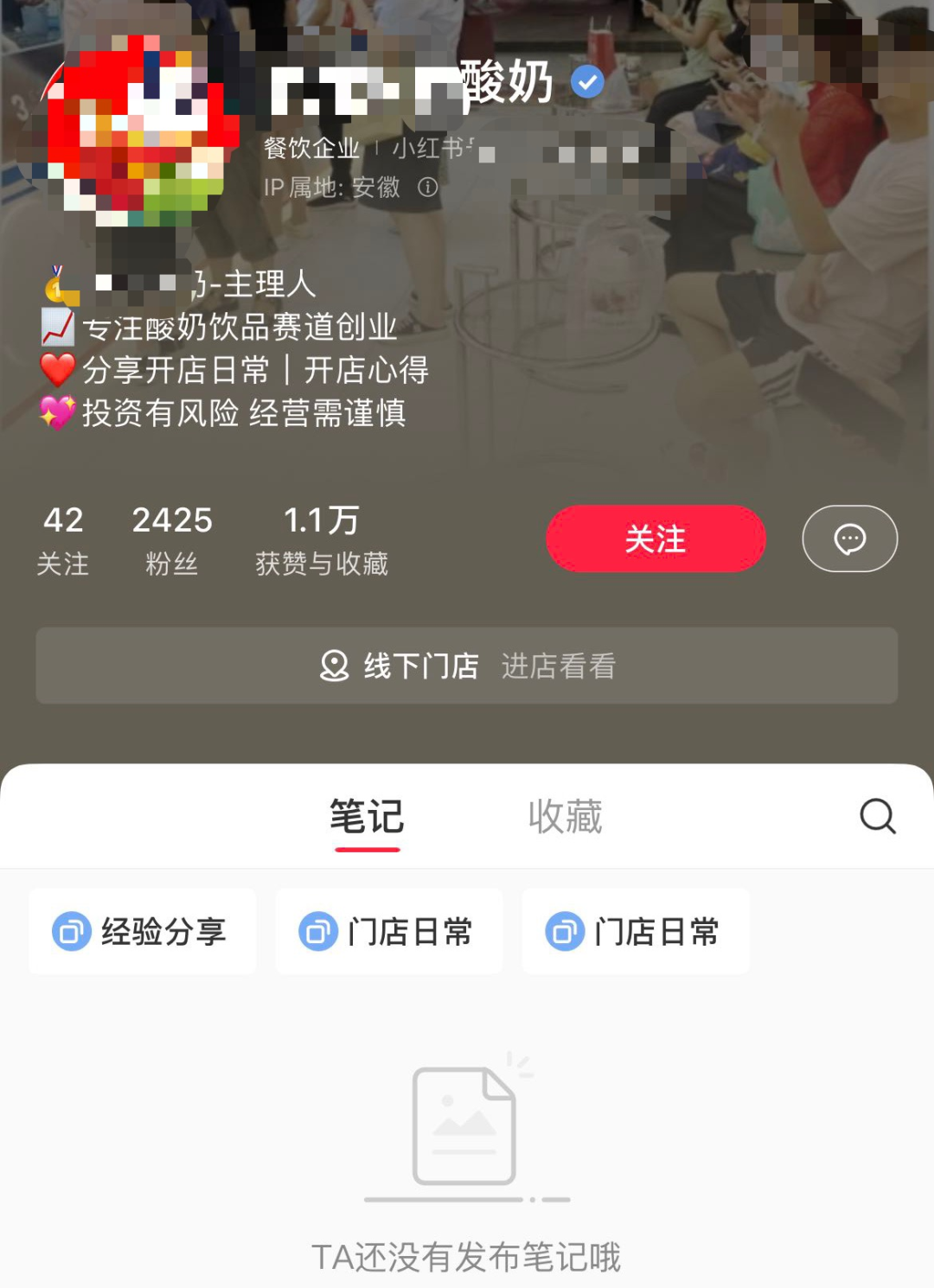 目前这起案件还未有新进展,不过红餐网发现,该品牌的小红书账号已经悄悄清空了所有内容,账号简介中的“8年酸奶店创业店主”“6家店,单店月卖9000杯,最快一个月回本”等被举报的字样也换成了“XX酸奶-主理人”“投资有风险,经营需谨慎”等。