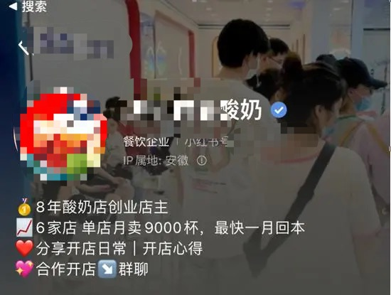 事情是这样的,来自浙江、云南的两名创业者在小红书上关注到了某酸奶饮品品牌。该品牌账号简介自称“8年酸奶店创业店主”“6家店,单店月卖9000杯,最快一个月回本”……