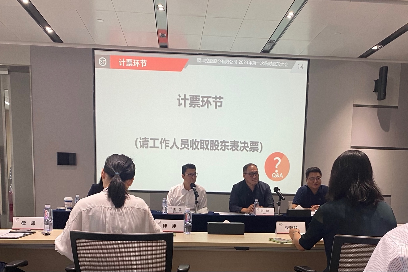 8月17日下午,顺丰控股在深圳市南山区科技南一路深投控创智天地大厦召开2023年第一次临时股东大会。界面新闻记者以投资者身份出席。