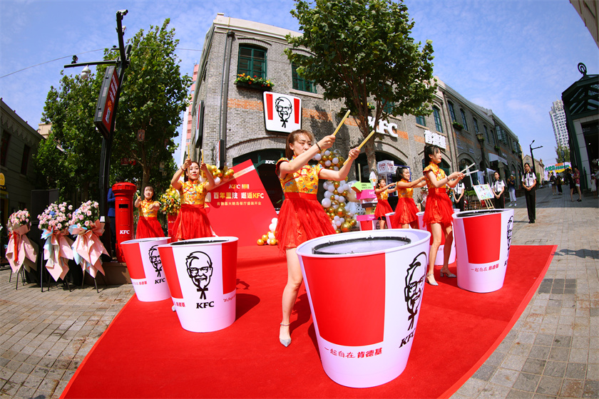 开业当日,时尚鼓手通过肯德基全家桶水鼓表演激情开场,燃爆全场。青岛环海湾投资发展集团有限公司、青岛市市北区文化和旅游局、青岛市市北区历史城区更新保护中心、天泰文旅集团城市更新事业部和山东肯德基等企业单位相关负责人亲临现场,与消费者一起见证餐厅开幕的美好时刻。