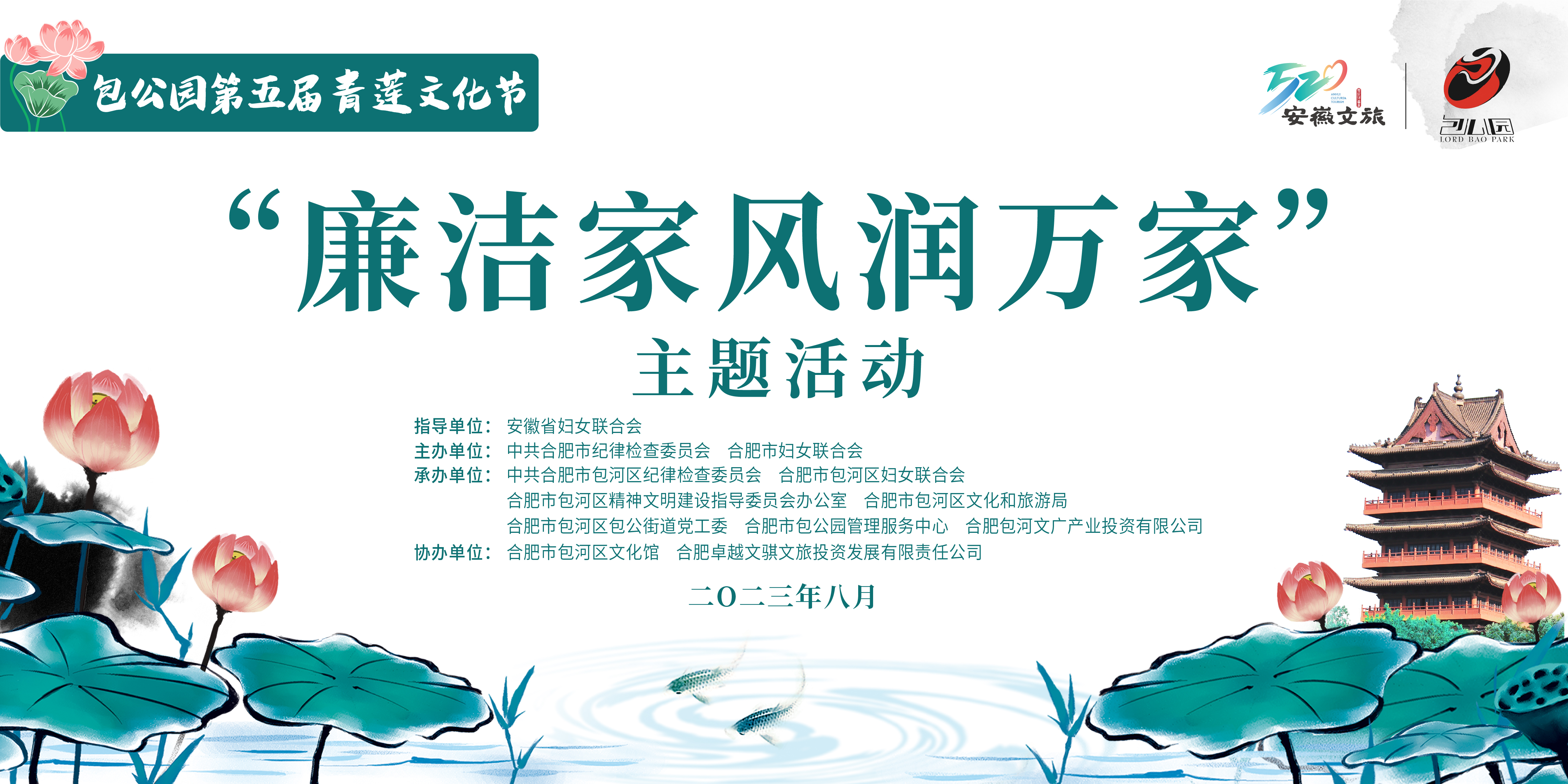 近年来,家庭、家教和家风建设已日益成为社会关注的焦点,为进一步弘扬中华民族传统美德,以包公孝廉精神的传承助力提升家庭家教家风建设,抓实守德守纪守法的家风教育,由安徽省、市、区三级联办的“廉洁家风润万家”主题活动暨包公园第五届青莲文化节活动,将于8月20日上午8:30在清风阁前广场拉开序幕。