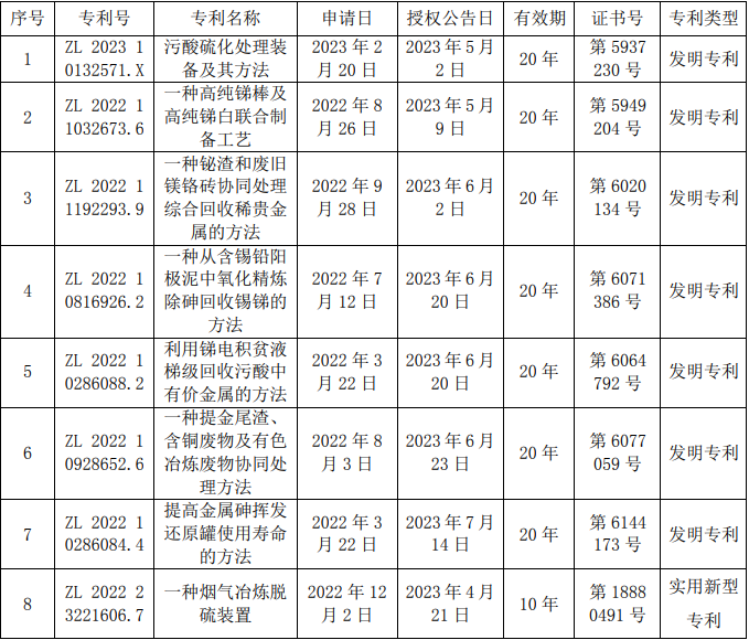 恒邦股份:近期获7项发明专利、4项实用新型专利