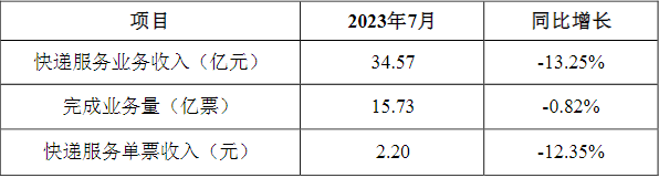 韵达股份:7月快递服务业务收入34.57亿元,同比下降13.25%