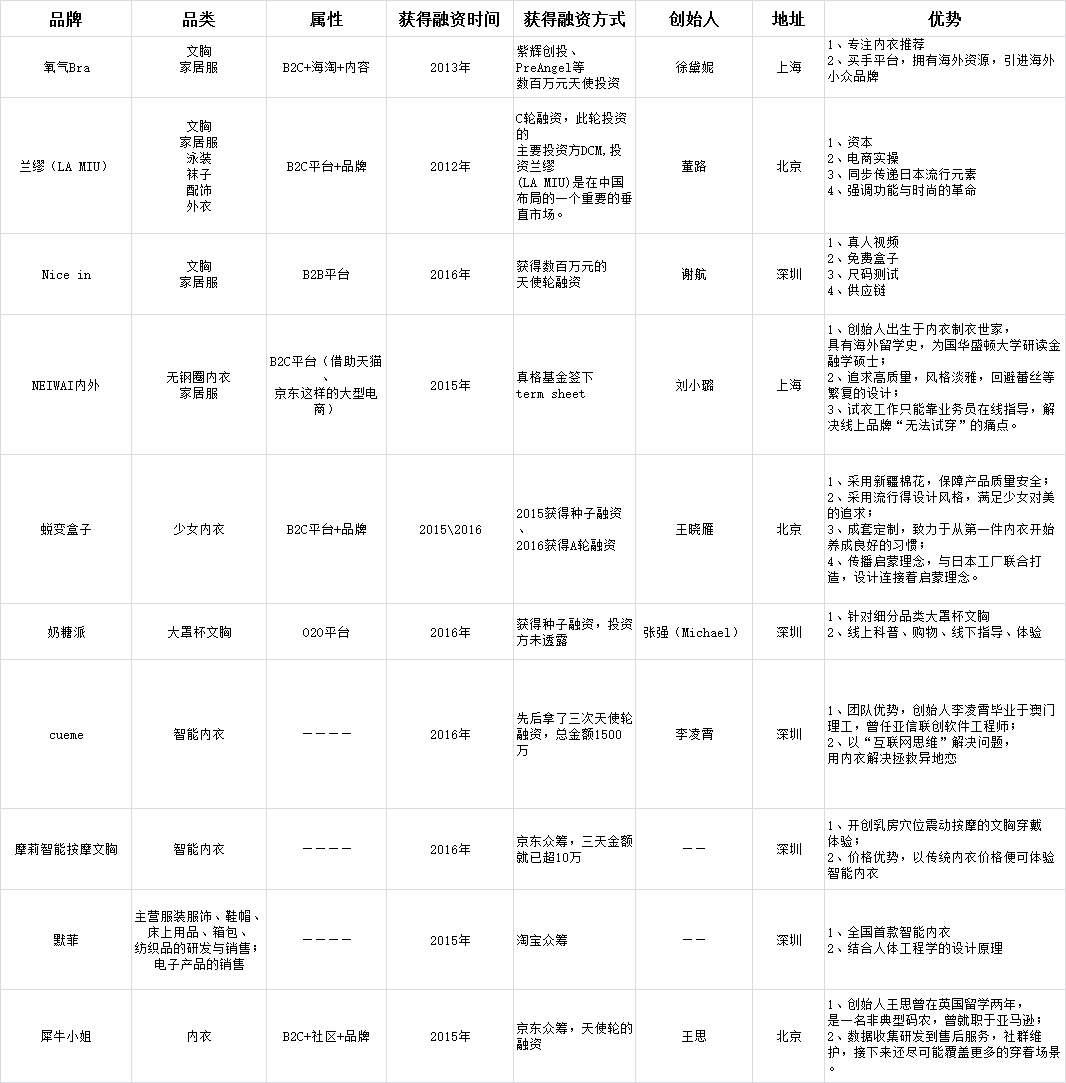 从上表可看出,获得融资的内衣品牌有几个共同的特点: