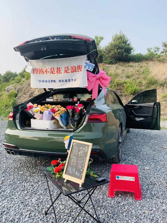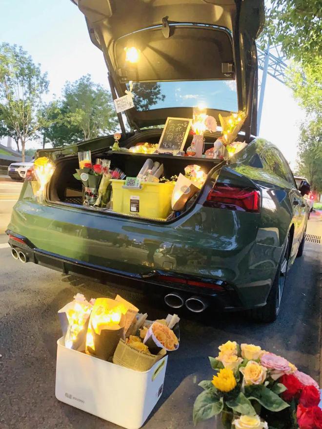 之前因为刚离职、闲来无事,决定用汽车后备箱摆摊。当时马上就要520,就想凑节日的热闹去卖花。