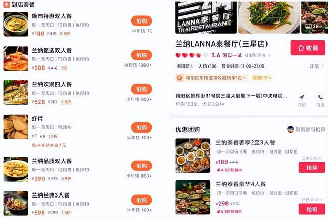 图/同一商家在抖音和大众点评上不同类型的套餐;来源/圆圆供图