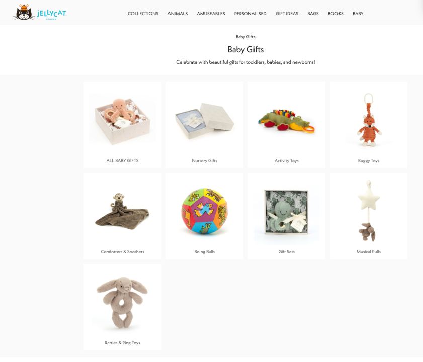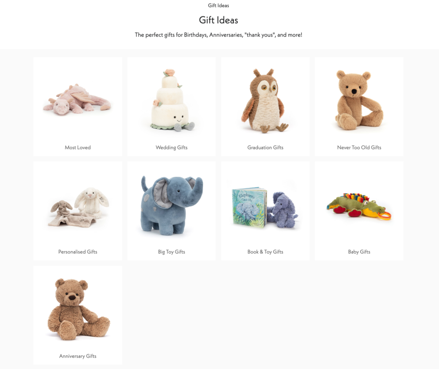动物毛绒本身就适合作为新生儿、幼儿的礼品,定价也合适。此外,jELLYCAT有适合不同场景、不同年龄层的礼物,如结婚礼物、周年礼物、毕业礼物等,选择丰富。