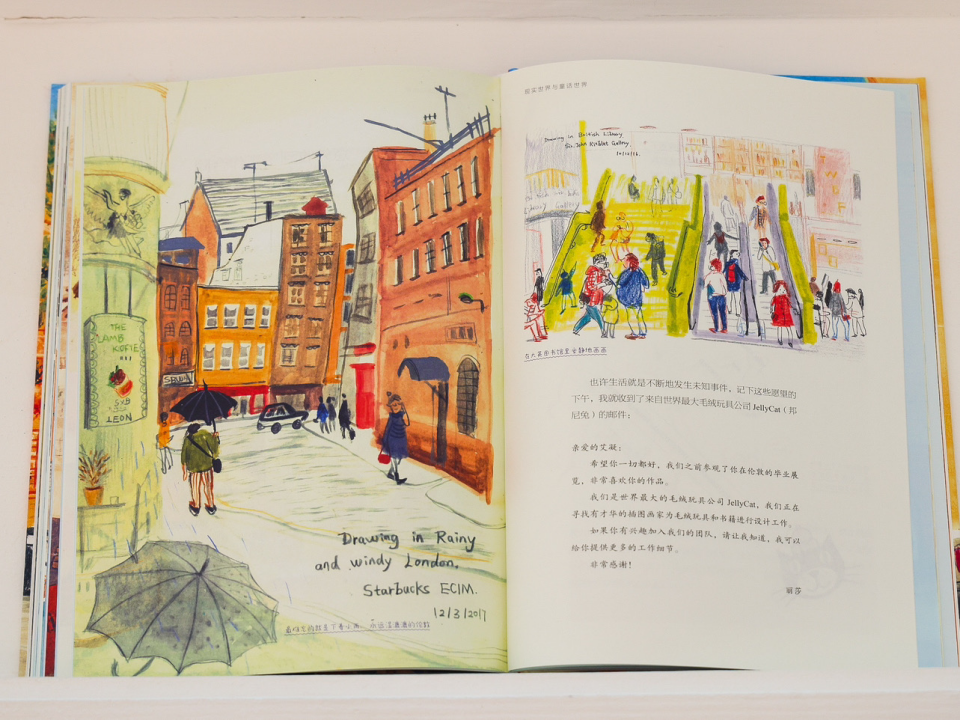 艾凝在绘本《去剑桥学插画》中讲述了与jellycat合作的故事,她吸引到jellycat的绘本作品(图二)是有趣的动物演奏图,特别符合jellycat的设计理念