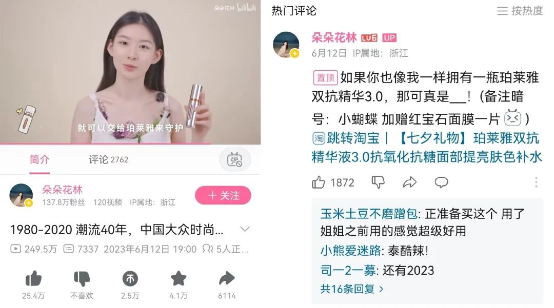 根据星火计划数据,珀莱雅合作商单登上B站热门榜的比例达18%,进店率高于大盘水平20%,ROI(投入产出比)超过大盘优质水平3倍。