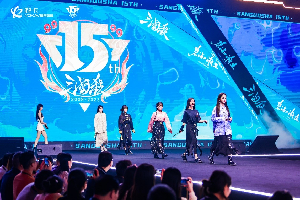 本次15周年嘉年华,《三国杀》首度打造了一场传统与时尚交织的国潮大秀。电气鼠、黄玉瑶、哭包等多位人气抖音红人与十多位专业模特一起,化身“三国杀女孩”,身着《三国杀》15周年限定款潮服,在充满国潮风味的T台上,随着律动的音乐摇曳生姿,演绎了一场梦幻的锦衣之美,在光影斑斓中为大家奉上了一场独具个性的视觉大餐,赢得现场玩家的大量喝彩。