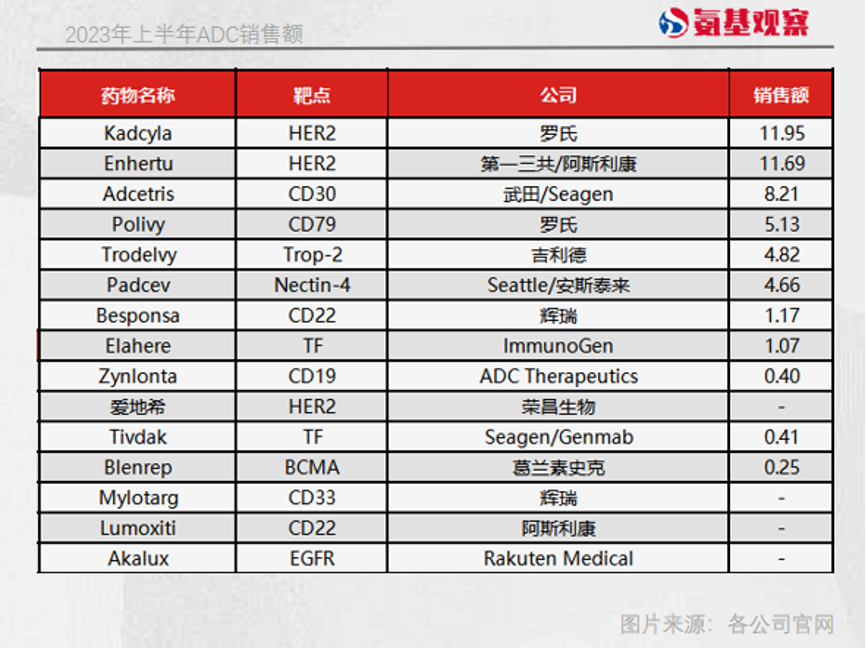 2023年上半年,所有ADC药物的销售额已经突破50亿美元,按照这样的趋势来看,ADC行业在2023年将成功突破百亿美元销售额门槛。
