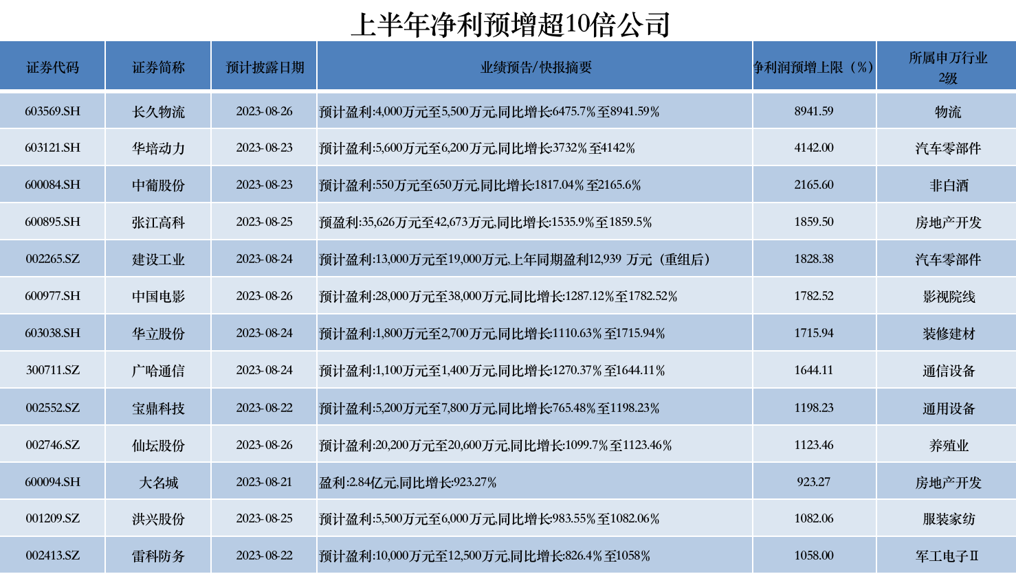 13家公司净利预增最高超10倍,不过大都因前期可比基数较低导致。