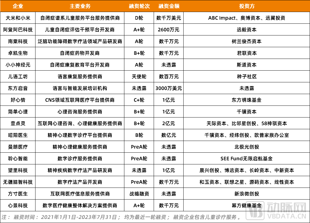 图1.近两年儿童心理健康领域融资企业(数据来源:动脉橙)