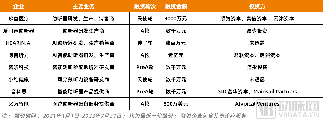 图3.近两年儿童助听器领域融资企业(数据来源:动脉橙)