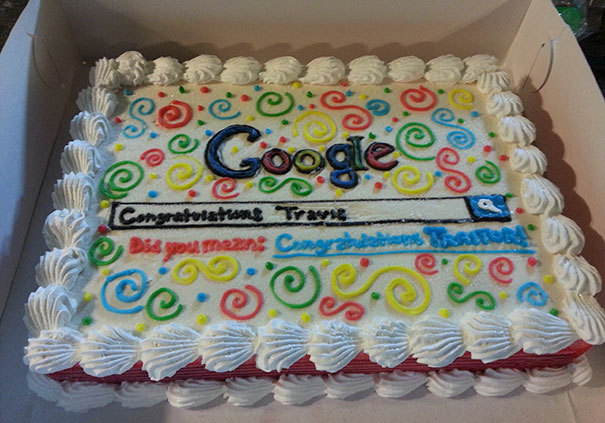 2.一位同事跳槽到必应(Bing.com),所以最后一天上班时,我送了他一个谷歌冰淇淋蛋糕。恭喜啊,背信弃义的人