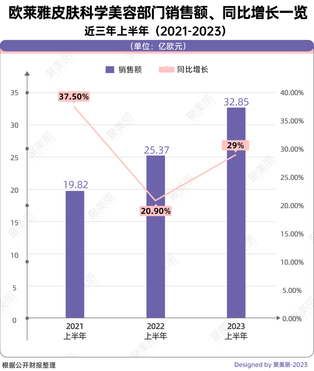 譬如,在今年上半年欧莱雅增速最高的部门是皮肤科学美容部门(前身为活性健康化妆品部门,今年2月在中国正式更名),同比增长29.0%。