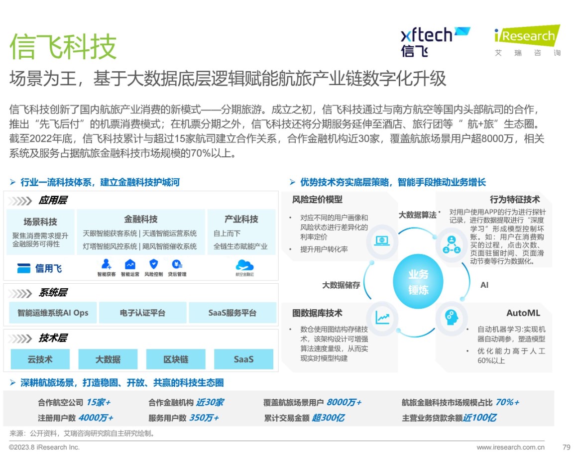 实际上,目前消费类金融信贷产品中,相关服务商围绕特定场景已推动供应链金融的落地。以本次报告中所引用的案例机构信飞科技为例,其正在将覆盖航旅产业链上下游的航旅金融供应链技术逻辑复制到小微等场景。