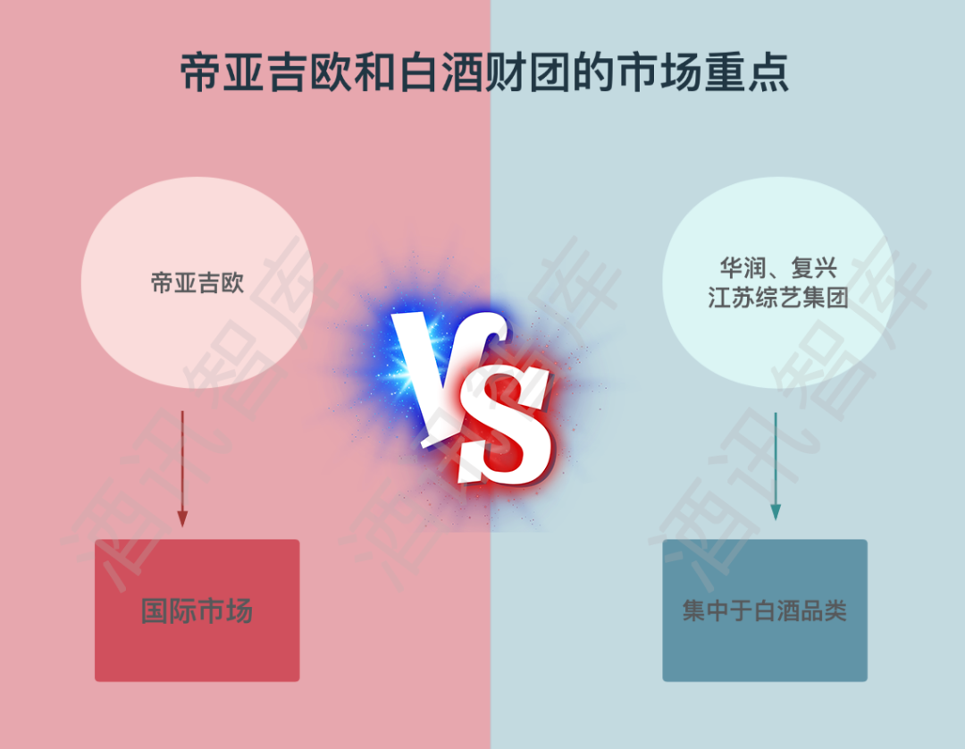 首先是市场重点。从目前来看,包括江苏综艺集团在内的众多“财团们”全都集中于白酒品类,且从针对国内市场,区别于帝亚吉欧将重心放在国际市场。