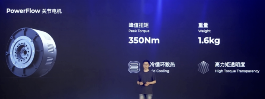 PowerFlow关节电机创新性的液冷循环散热系统,可以有效地将电机内部产生的热量通过液体传导到外部的散热器,从而降低电机的温度和阻抗,提高电机的效率和稳定性。