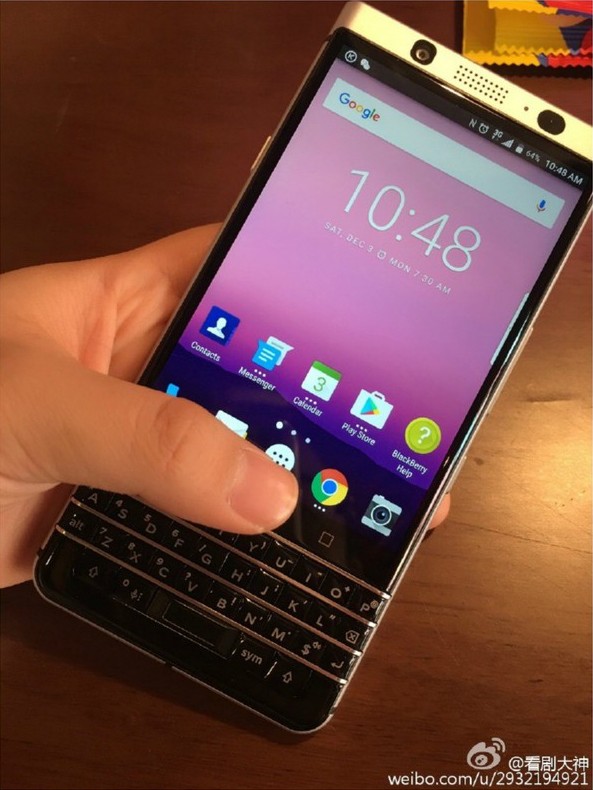 而微博用户@东通黑莓 则称,此图为工程样机,该新机采用骁龙 820/821 处理器、Adreno 530 GPU、运行 Android 7.0 系统、指纹在空格键上。同时,他也表示这是黑莓公司设计的最后一款手机。