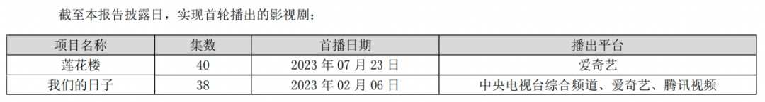 实际上,《莲花楼》的播出时间为7月,并不在半年报披露的时间周期内,这意味着2023年上半年,欢瑞世纪仅有一部剧实现首轮播出,即2月6日播出的《我们的日子》。