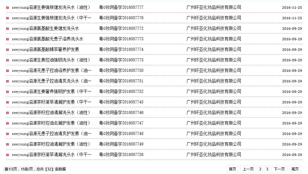 在这上千条备案信息中,广州环亚化妆品科技有限公司(以下简称“环亚集团”)旗下品牌滋源,占了32条,占比为3%。