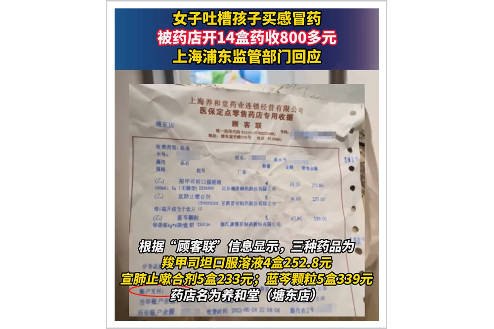 更多的是,像上海女子这样,一个小感冒被开了14盒药。某些药店,真是把药当成了口粮卖。