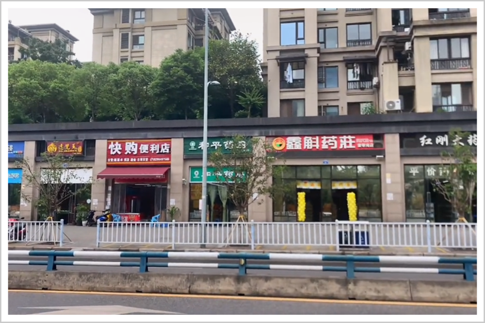 视频里,一个小区底商几乎全是药店。小哥认真数了数,竟然有10家之多。于是,他得意地宣布:
