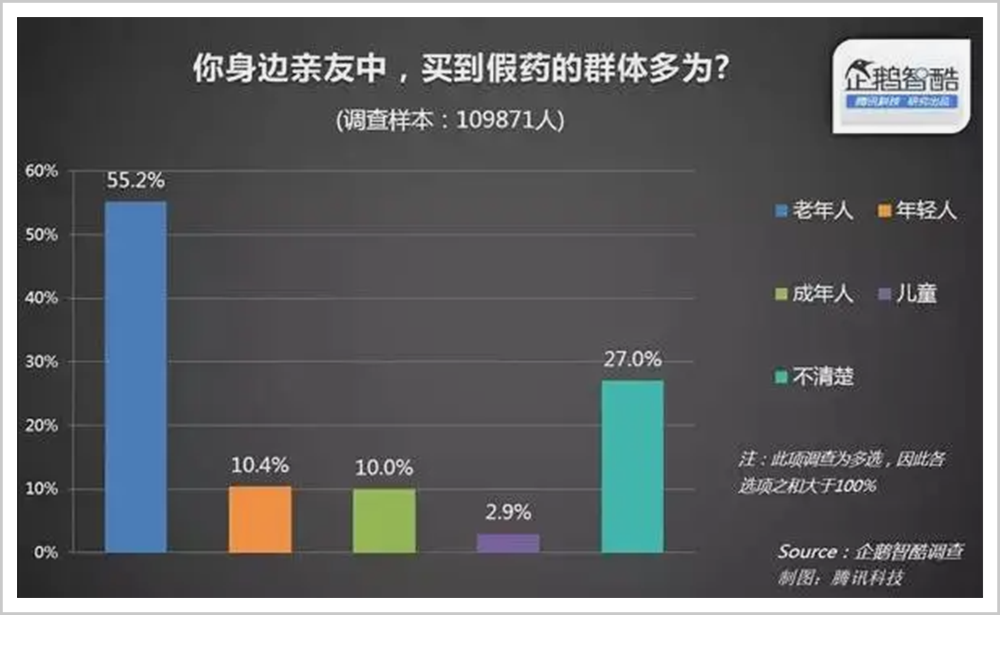 在腾讯2023年的一项网络调查中,有超过6成的消费者或其亲友买过假药,老年人是重灾区。