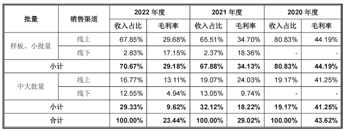 界面新闻记者注意到,2022年嘉立创中大批量线下销售毛利率低至4.94%。