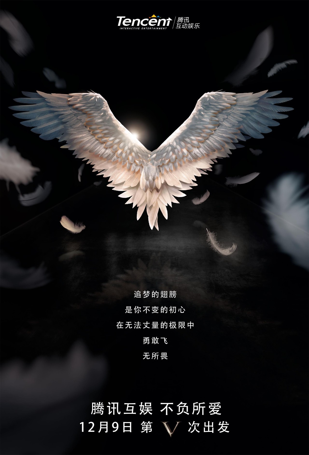 ▼ 金属质感的罗马字符“Ⅴ”,是否象征腾讯互娱第五大业务板块?海报中提到“第五次出发”又意味着什么?